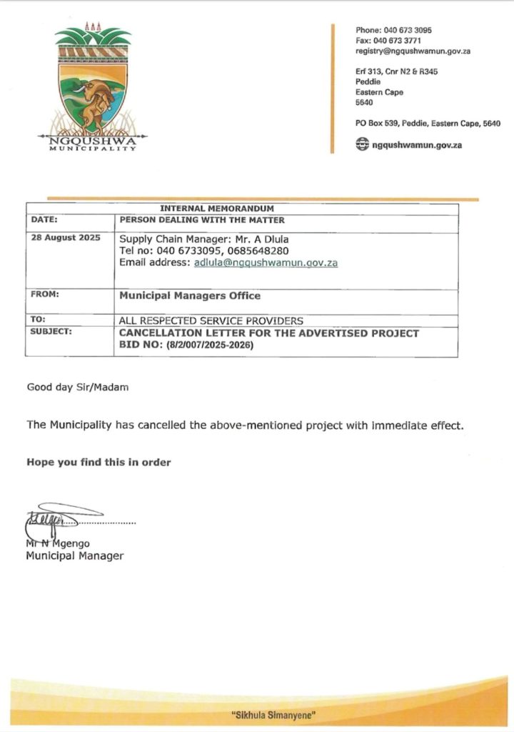 notice: Cancellation of epwp uniform tender / Notices / By Nokuthula Majali EPWP UNIFORM CANCELLATIONDownload